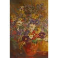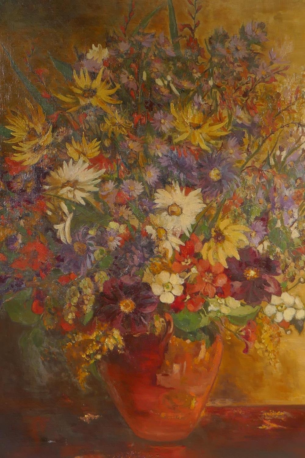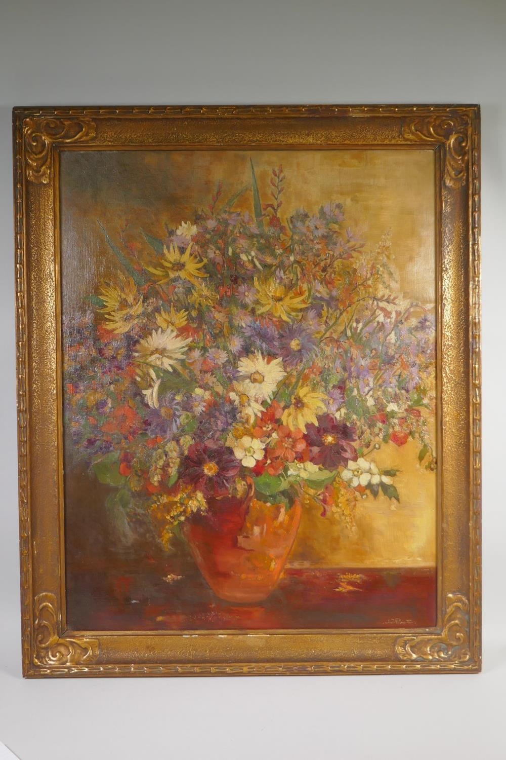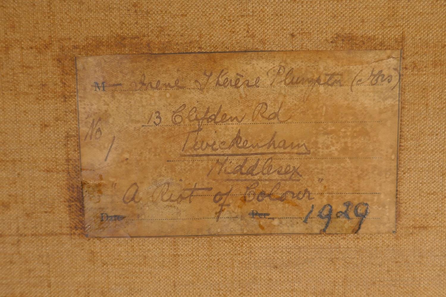 Irene Plumpton, (British, active early C20th), A Riot of Colour, 1929, still life with flowers, oil on canvas, 56 x 71cm
