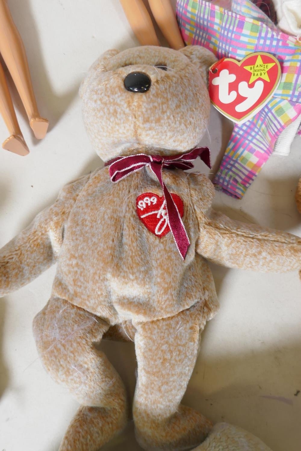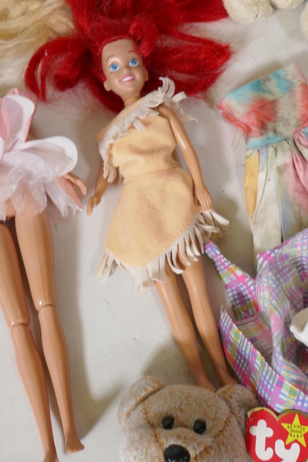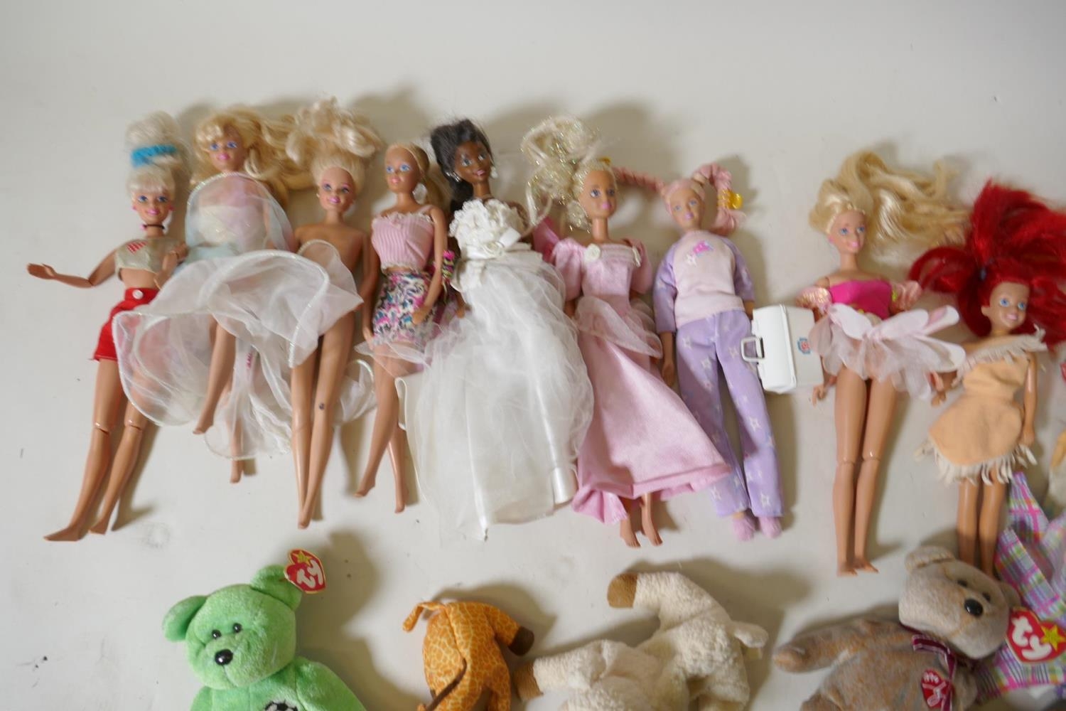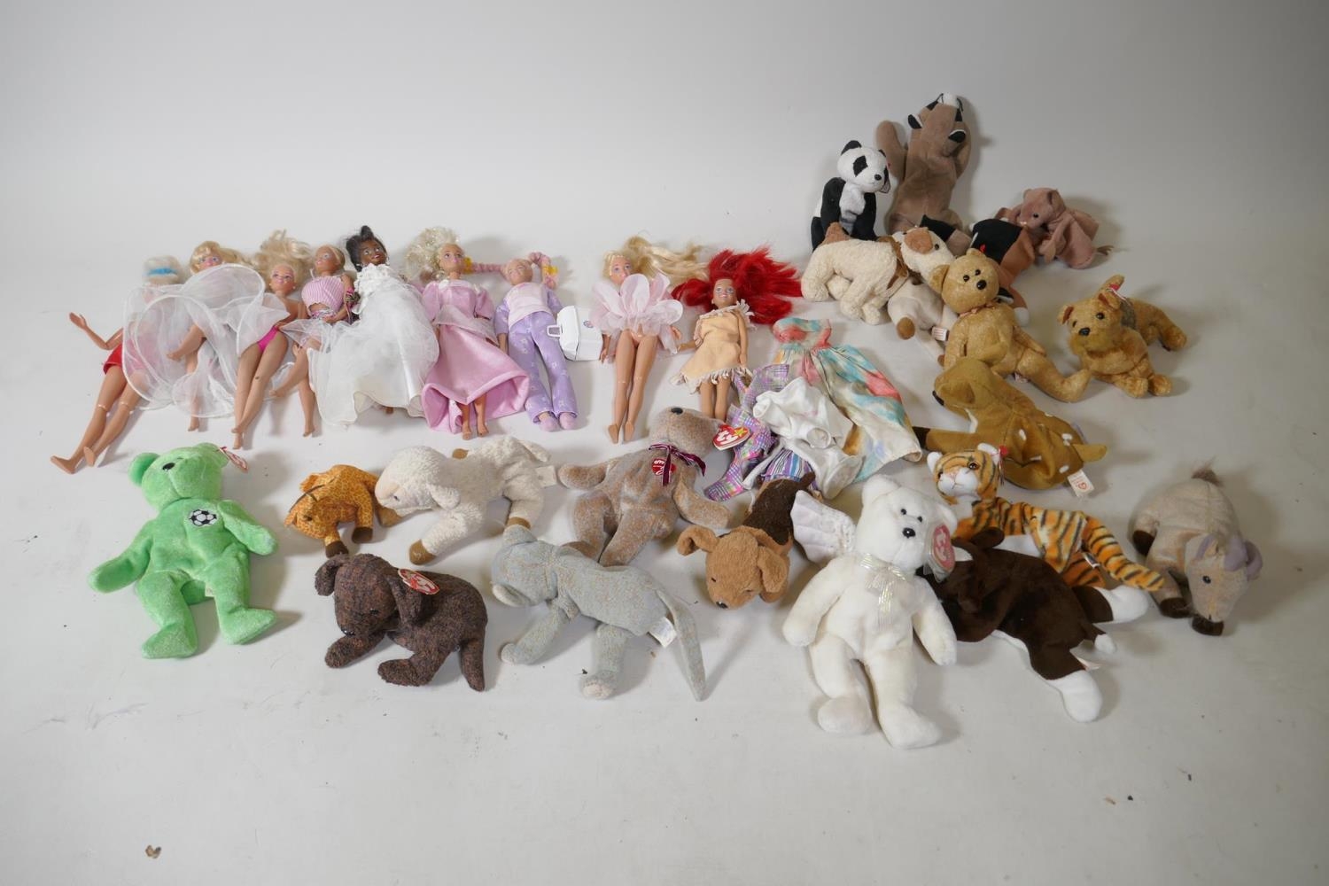 Collection of Ty Beanie Babies and Mattel Barbie dolls