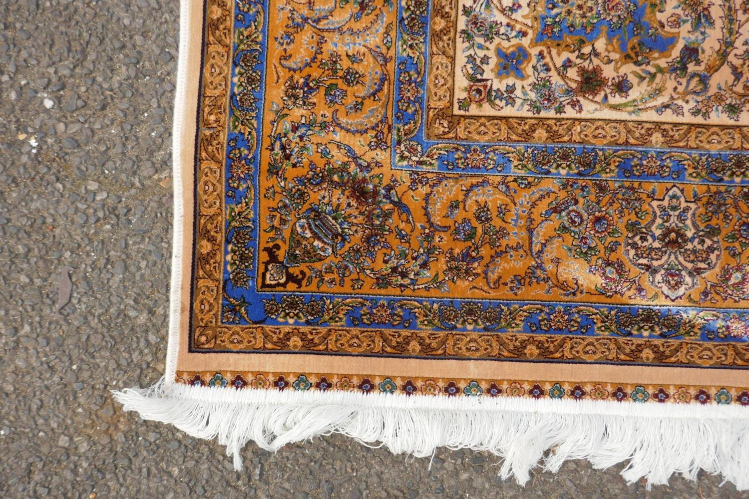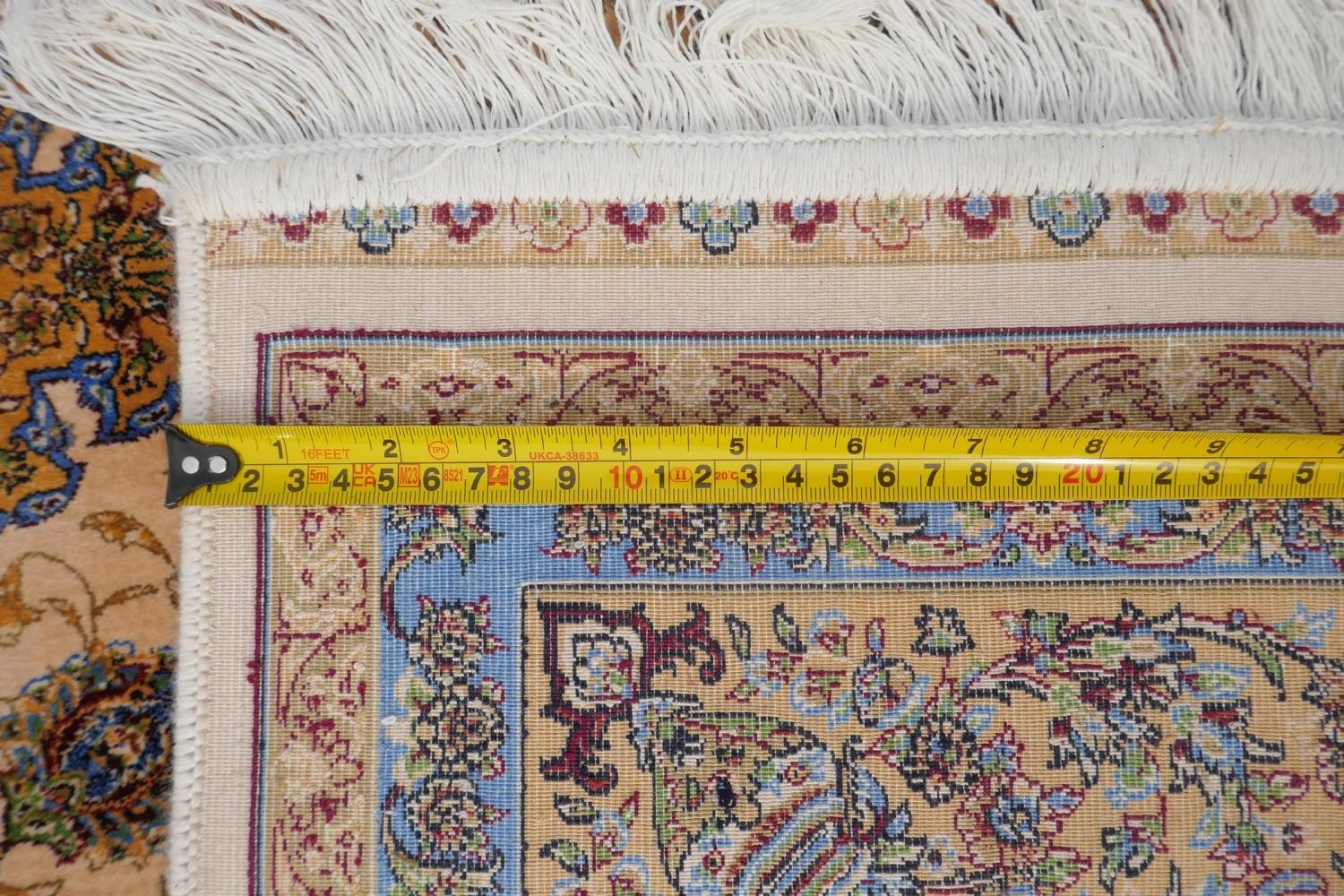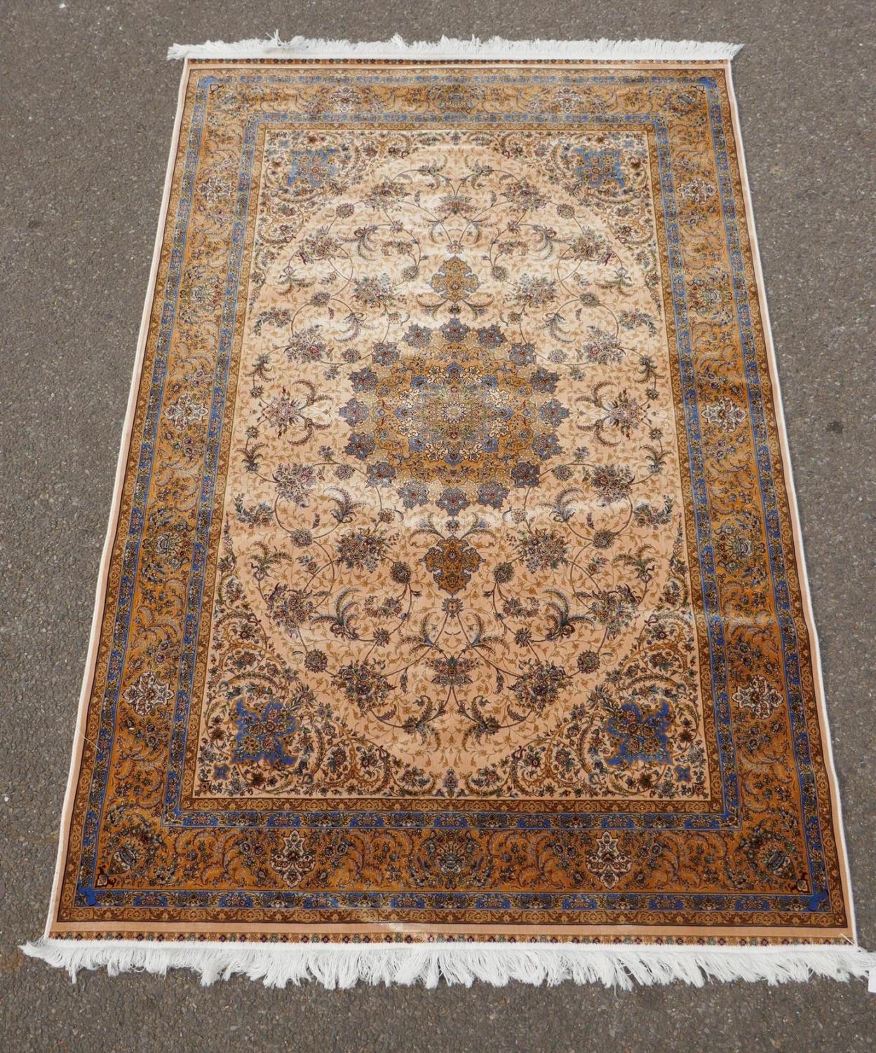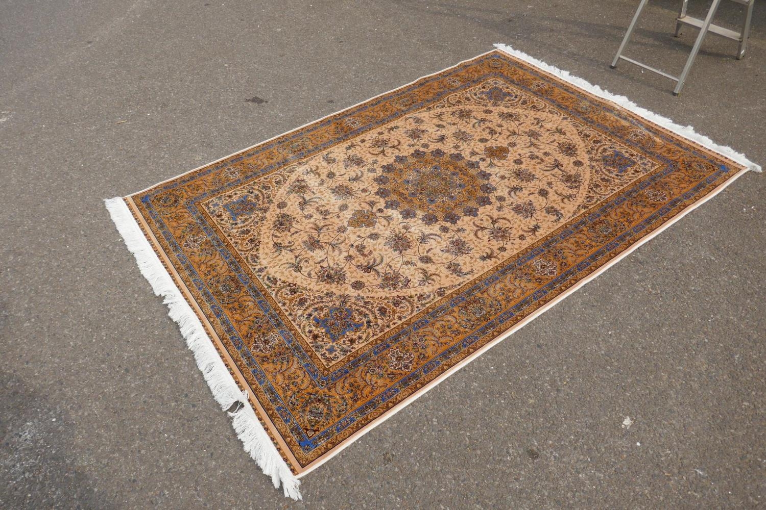 A fine silk Iranian cream ground rug with tradition floral medallion design, 152 x 226cm