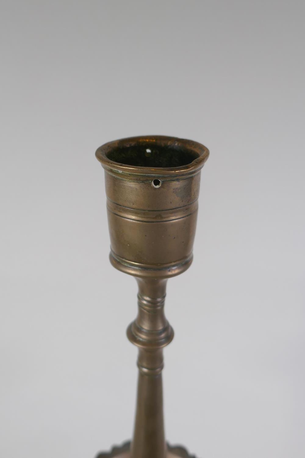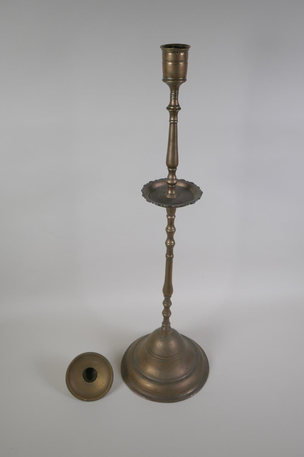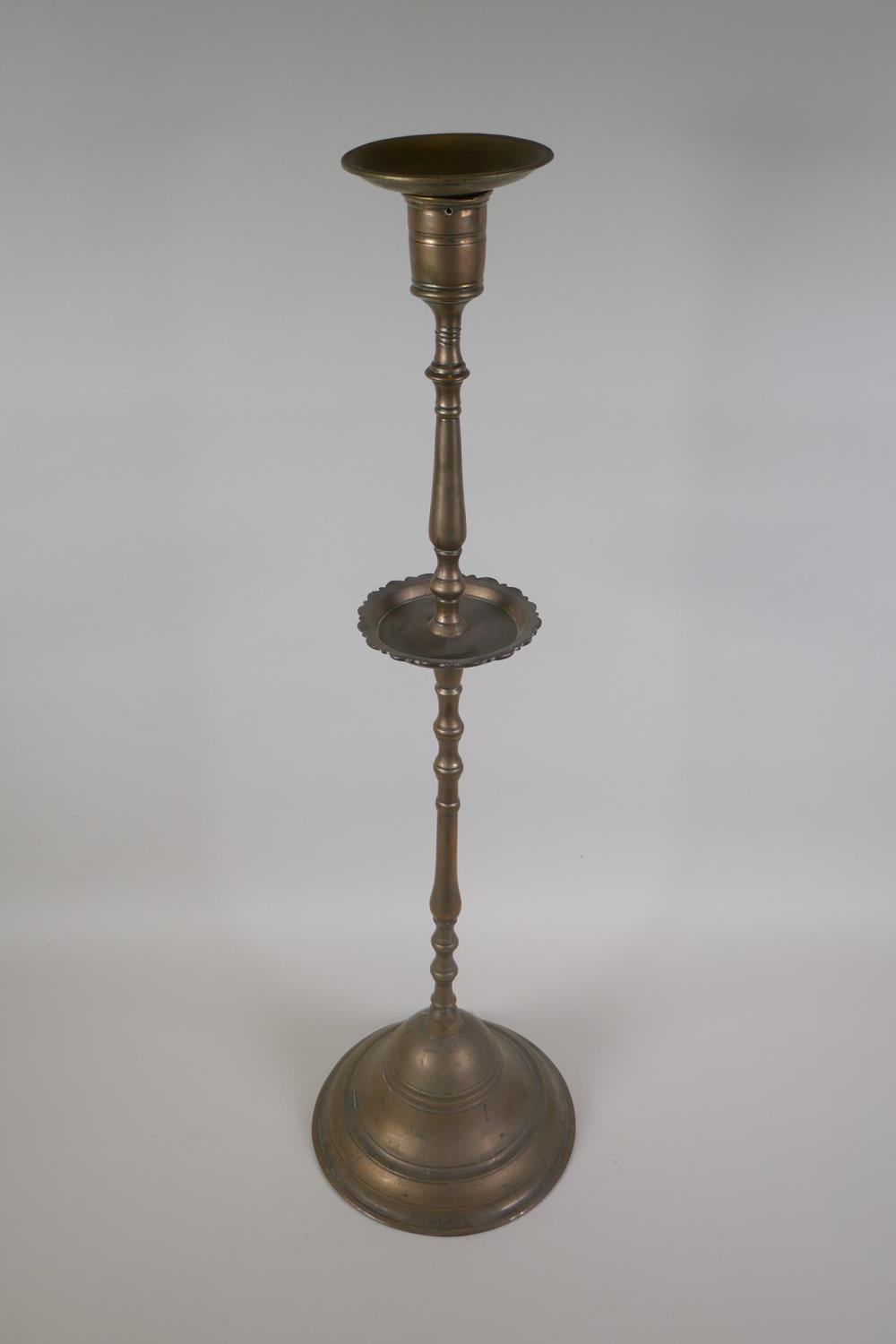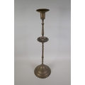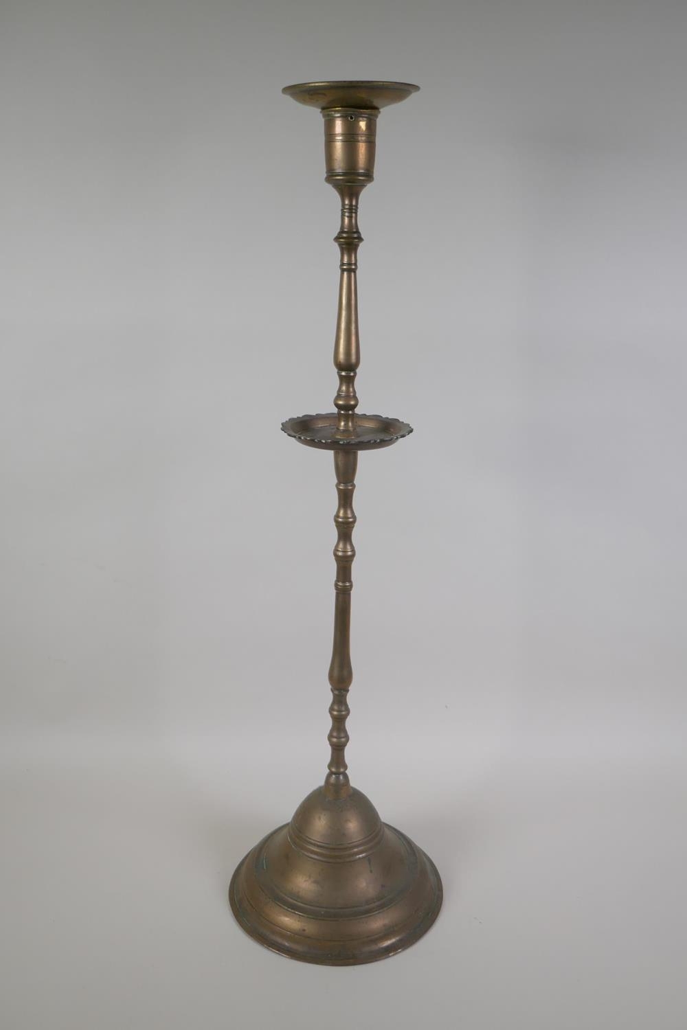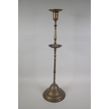 An antique Ottoman brass candlestick, probably C18th, 69cm high
