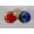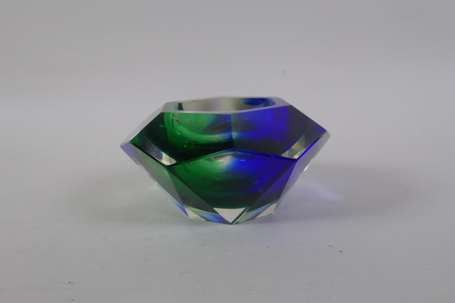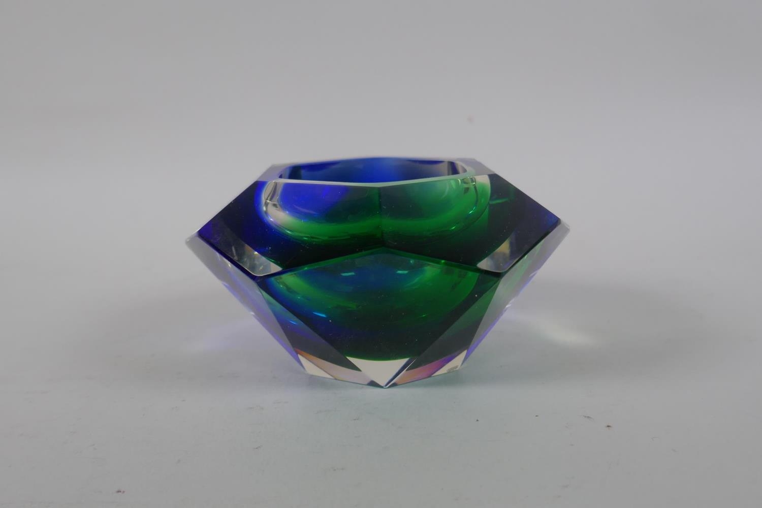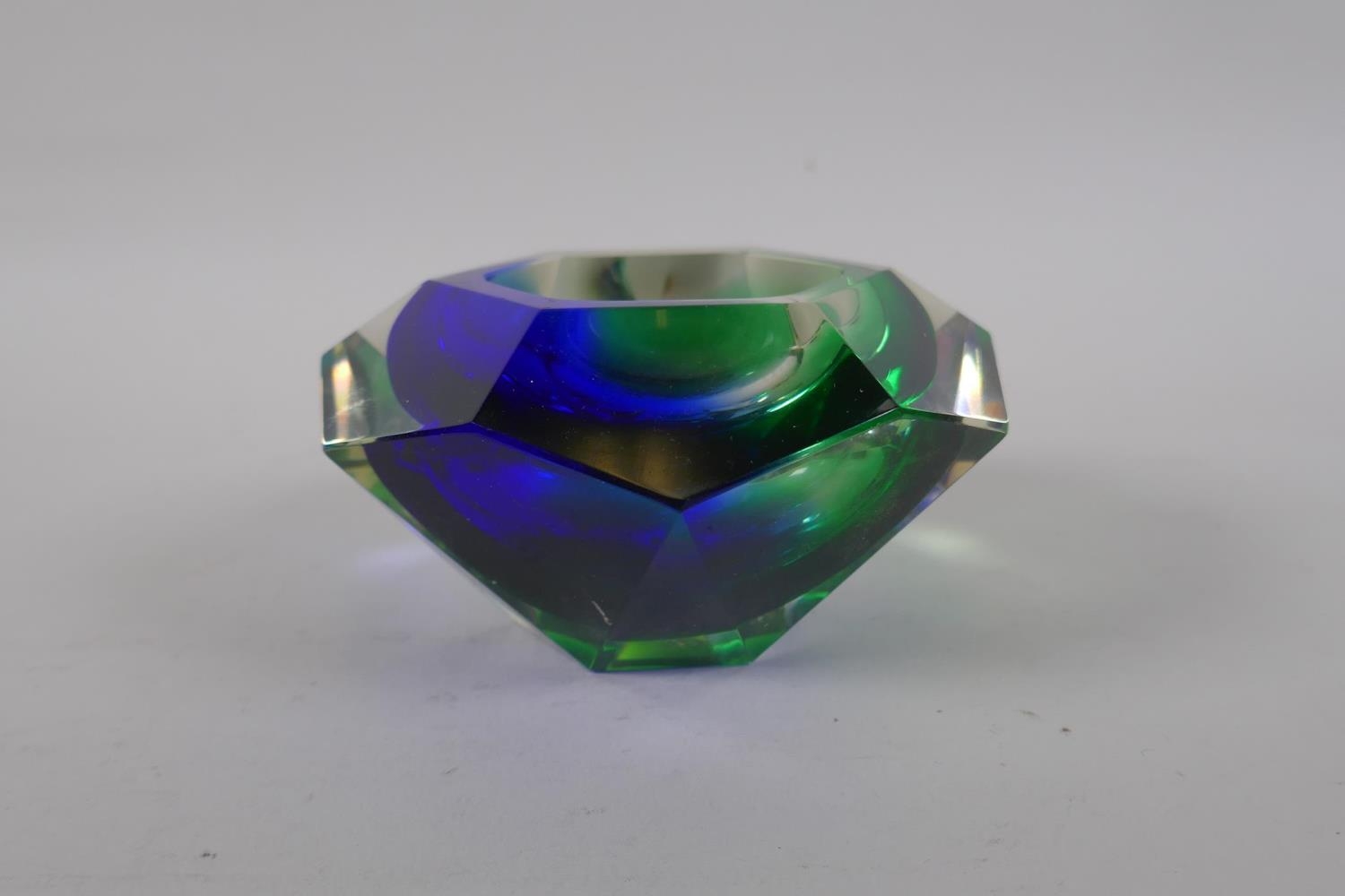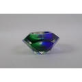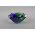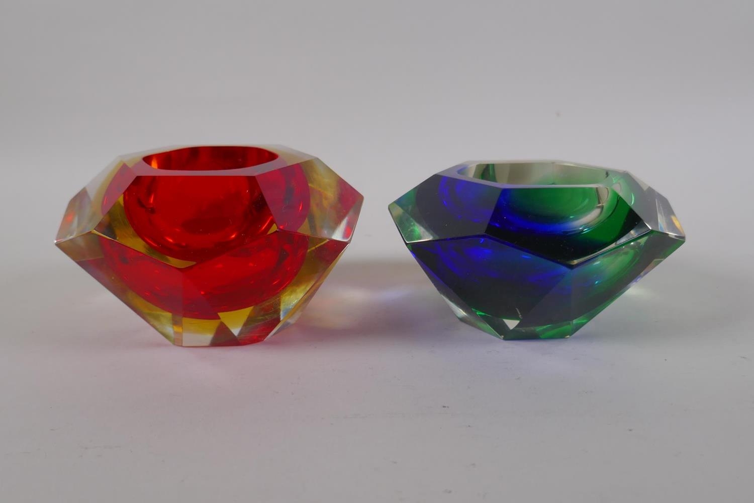 An Italian mid century Somerso style diamond shaped orange glass bowl, probably Flavio Poli, and another similar, 12cm diameter